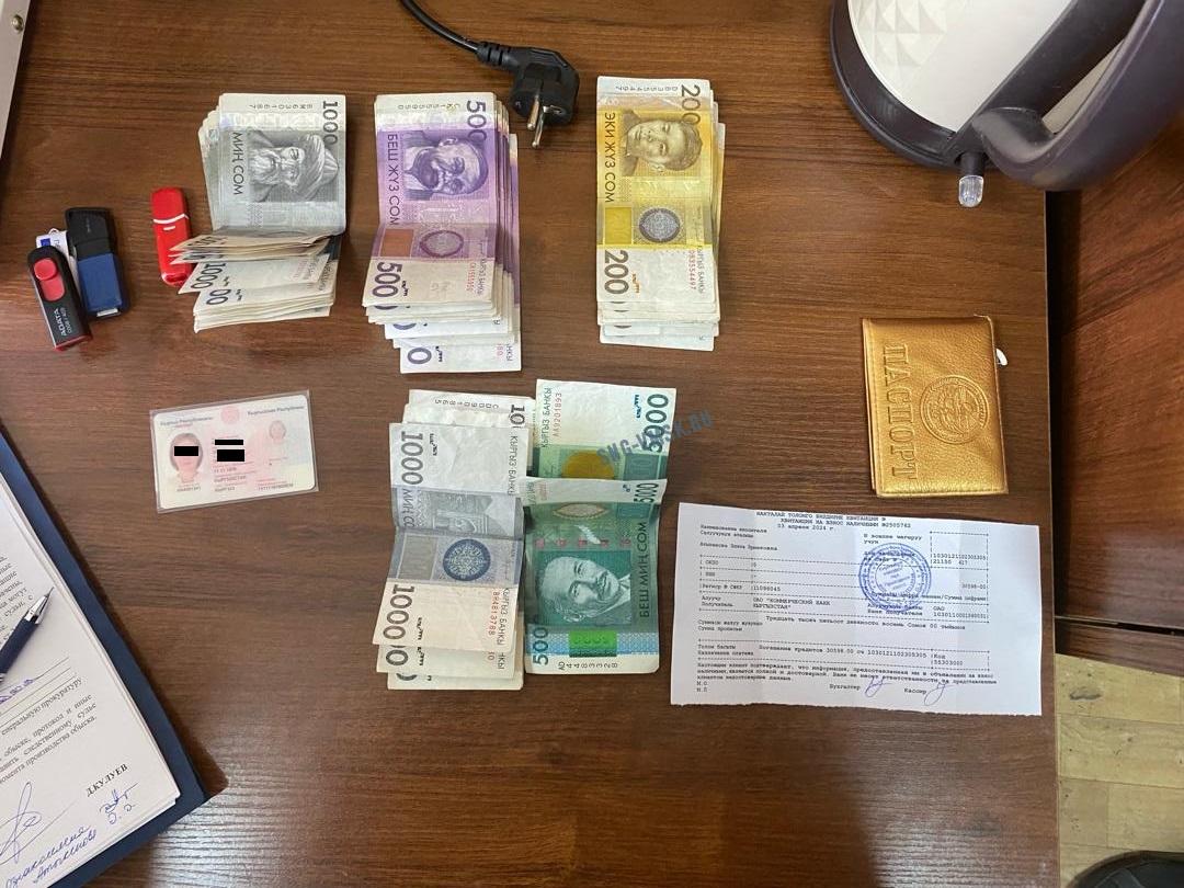 «Они вымогали деньги у гражданки под предлогом возбуждения в отношении нее уголовного дела и привлечения к уголовной ответственности. В ходе обыска в служебных кабинетах обнаружены и изъяты полученная в качестве взятки часть денег — 80 тысяч сомов, а также другие чеки и квитанции на сумму более 30 тысяч сомов», — говорится в сообщении.