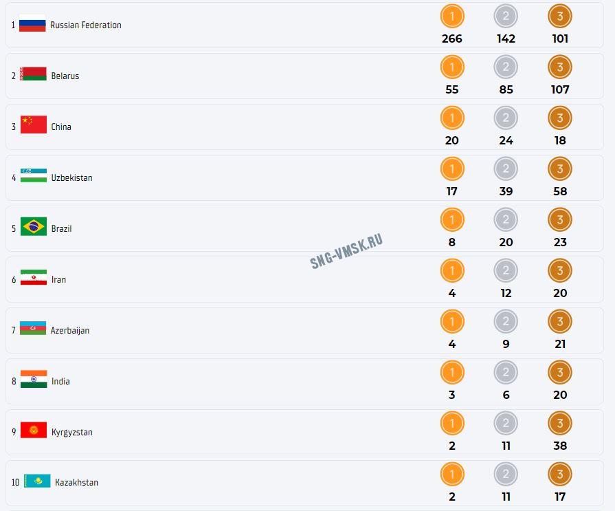 Фото с сайта игр стран БРИКС. Медальный зачет