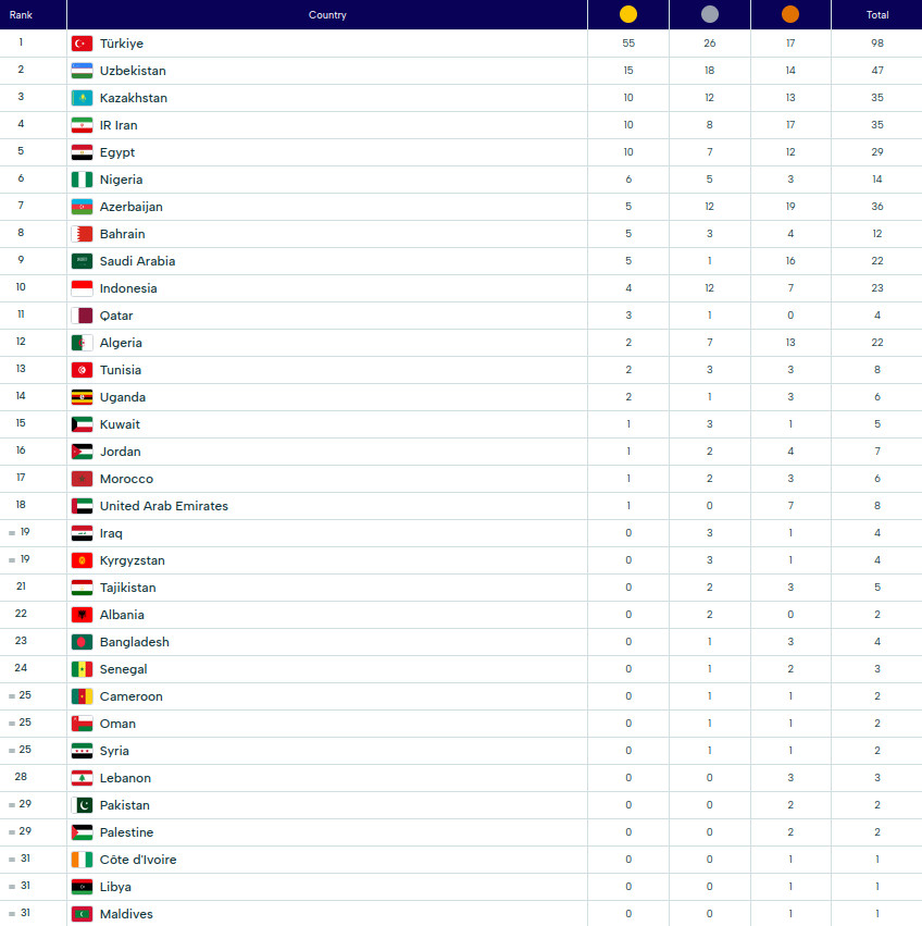 «Sport АКИpress» — Сборная Кыргызстана занимает 19 место в медальном зачете Игр исламской солидарности в Саудовской Аравии.