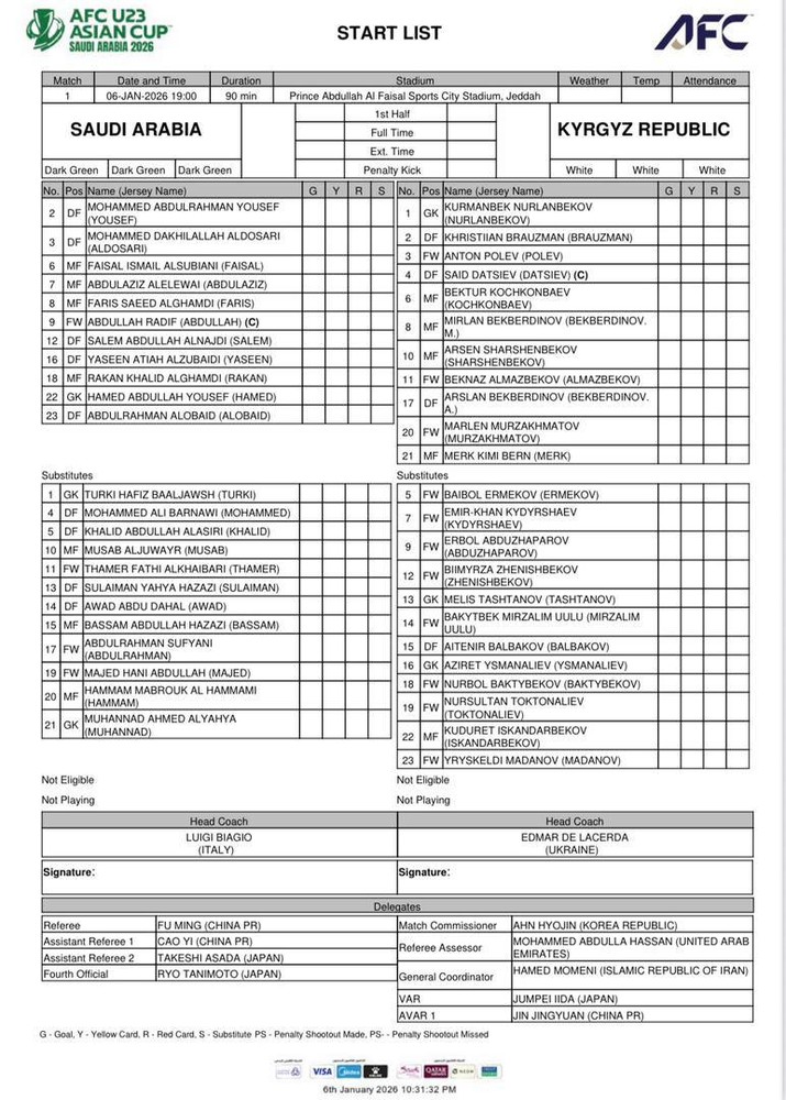 Кубок Азии (U-23): Стал известен стартовый состав сборной Кыргызстана на матч против Саудовской Аравии * 𝙎𝙉𝙂 𝙫 𝙈𝙎𝙆 КЫРГЫЗЧА ОКУЯЛАР