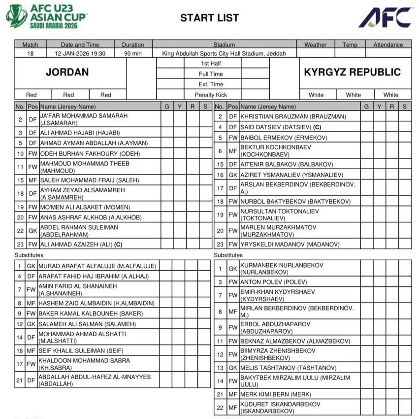 Кубок Азии (U-23): Стартовый состав сборной Кыргызстана на матч с Иорданией * 𝙎𝙉𝙂 𝙫 𝙈𝙎𝙆 ♡ КЫРГЫЗЧА ОКУЯЛАР